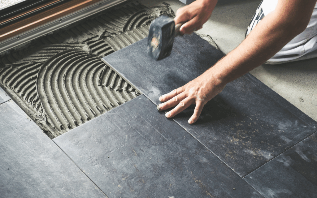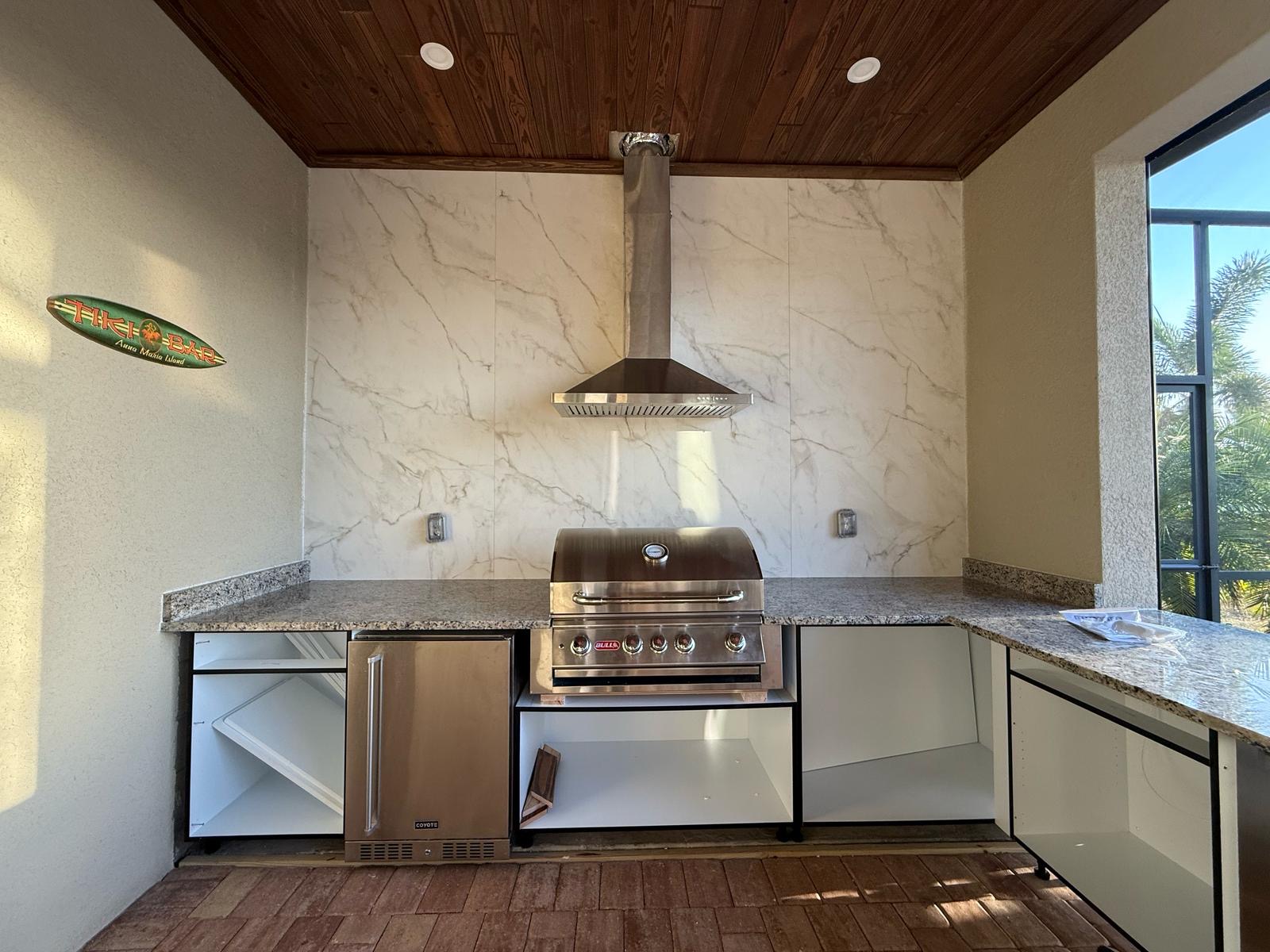 Tile installation on a barbecue area, providing a clean and modern finish.